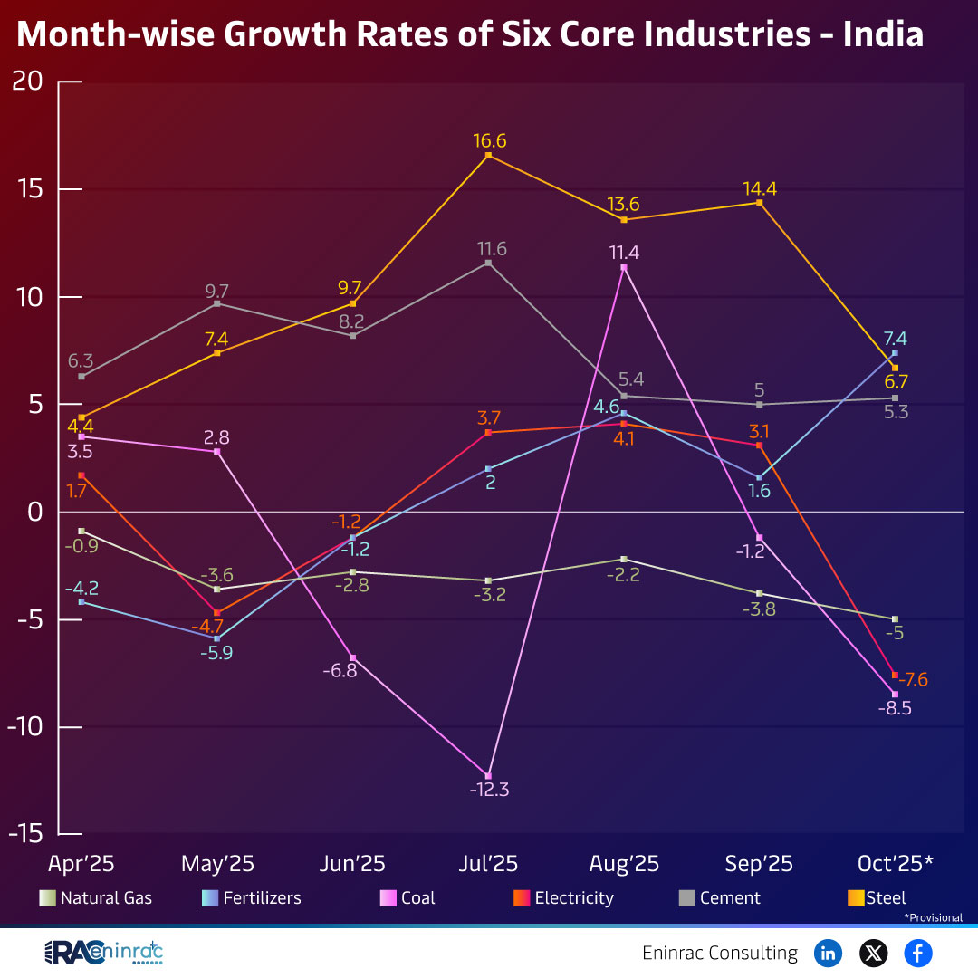 Older Newer Share Tags Six core industries growth IndiaCore sector performance 2025Coal production growth IndiaElectricity sector growth IndiaCement industry growthSteel sector performance IndiaNatural gas production India